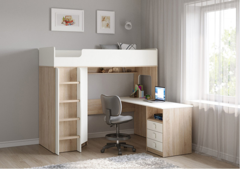 Учебная зона со столом под спальным местом открывает возможности для письменных работ,а также здесь удобно расположить ноутбук.