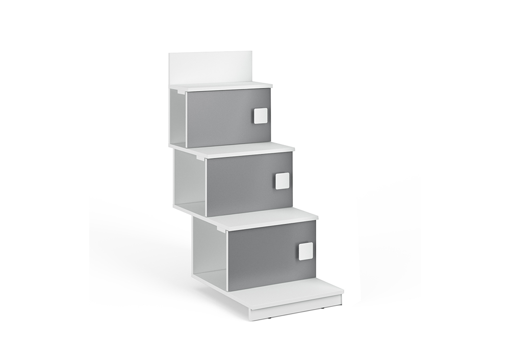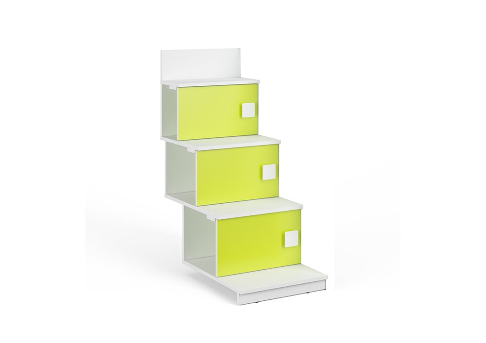 Лестница средней величины из трех ступенек,сочетается с двумя невысокими кроватями-чердаками. Предназначена для установки между двумя кроватями.